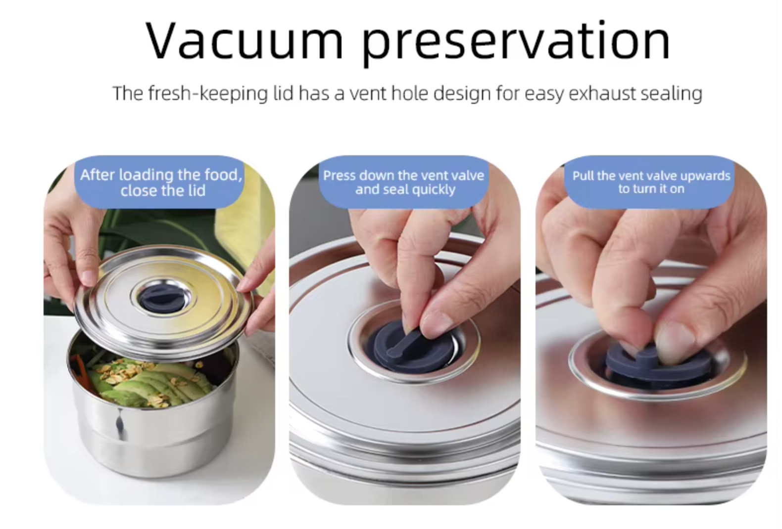 Food Container Stainless Steel 304 Round With Silicone Vent